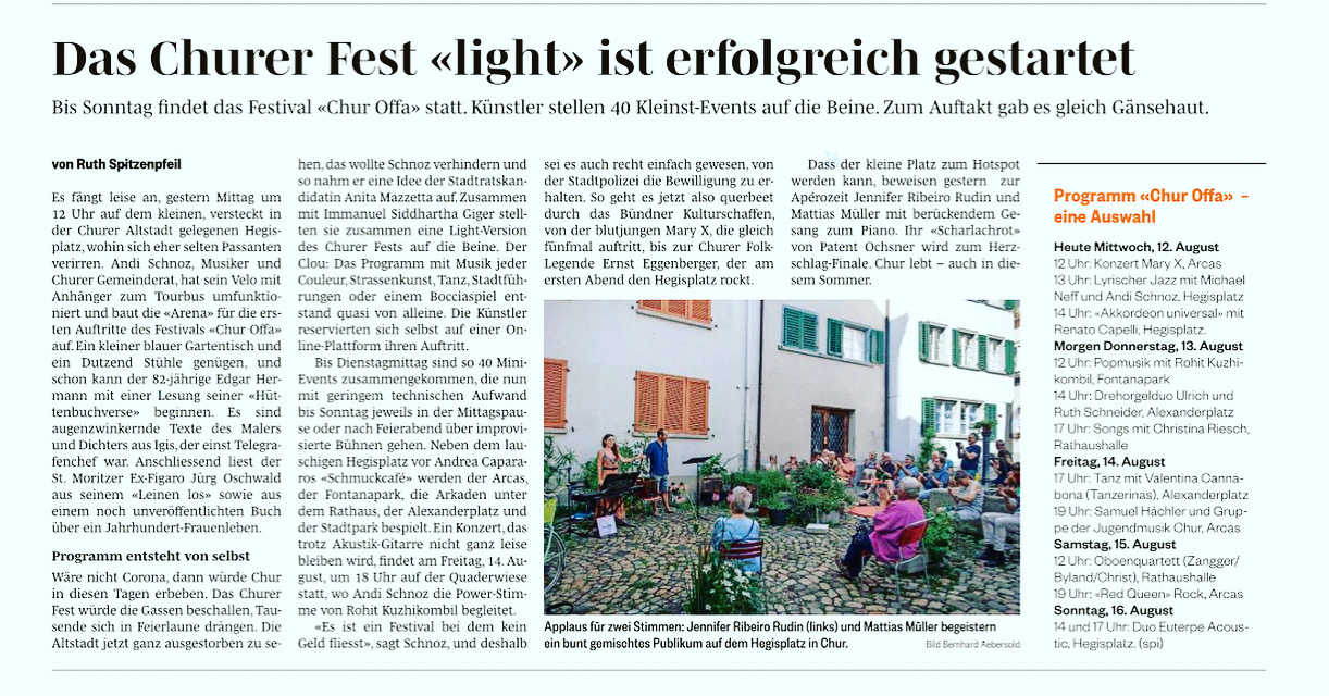 Interessierte werden gebeten, ihre Corona-konformen Kleinstanlässe auf www.churoffa.ch zu registrieren. Bleiben wir auch während Corona ein kulturelles und lebendiges Chur!